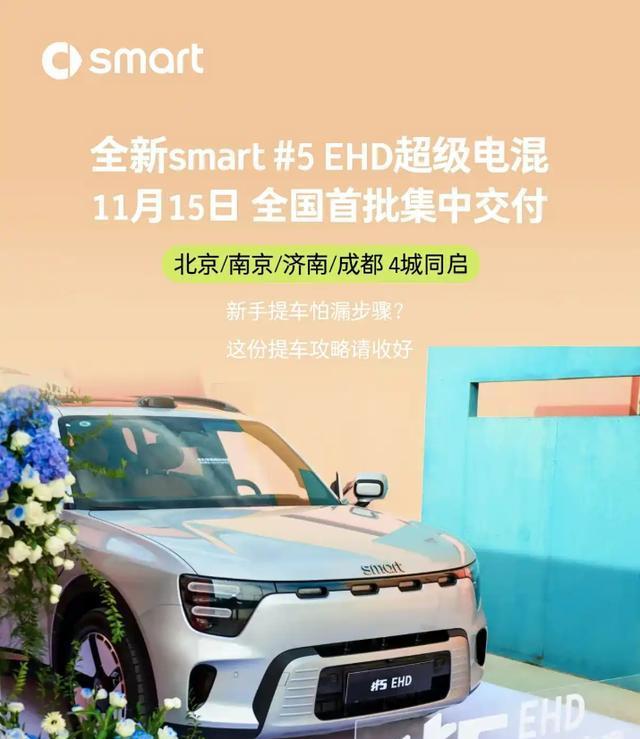 近日,smart精灵#5 EHD正式开启交付,全国首批集中交付在北上、南京、济南、成都四城同步进行。此前这款中型SUV已正式上市,共推出4款车型易速宝,售价区间为18.99-23.99万元,搭载1.5T插混系统与三挡DHT变速箱,最大纯电续航里程可达252公里。