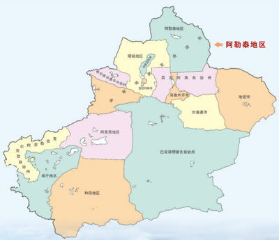 阿勒泰地区位于我国西北边陲,新疆维吾尔自治区北端的伊犁哈萨克自治州东北部,东部、西部和北部分别与蒙古国、哈萨克斯坦、俄罗斯接壤,是我国西北地区唯一与俄罗斯接壤的地区。