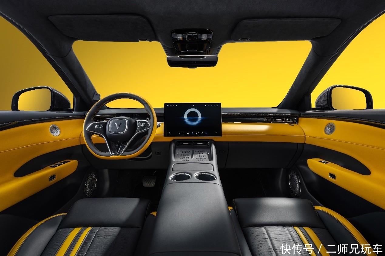 新车内饰延续外观撞色设计,采用玄金双拼撞色内饰,跳脱的对比色瞬间点燃座舱气氛,激发驾驶欲望。仪表台、门护板、方向盘、座椅等关键区域均有黄色超纤包覆,与A/B/C柱及顶棚的仿麂皮材质,共同营造出激情、豪华的内饰氛围。升级定制的NAPPA环抱式运动座椅,精选头层牛皮带来温润细腻的触感,严密的人体工学设计确保在激烈驾驶时提供全方位的支撑与包裹;暗影哑光碳纤维组件覆盖外后视镜、驾驶舱前内饰面板、方向盘等部分,100%真碳纤维丝带来的独特纹理与质感,点亮了座舱的运动豪华气息。